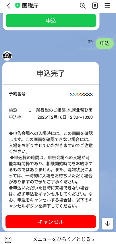 税務署の所在地などの詳細情報をメッセージで送ってもらえます。